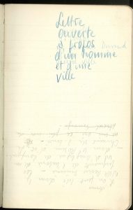 N° 660·"Lettre ouverte à propos d'un homme et d'une ville". Manuscrit aut.s. et daté "Bois-Tordu, Le …