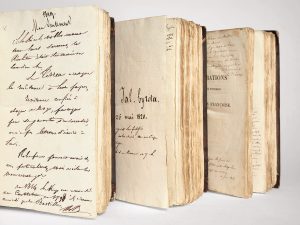 lot 52 (Chamfort Maximes et pensées) offert au Centre Stendhal de la Bibliothèque municipale de Grenoble, lot 105 (Paul Verlaine Les Poètes maudits) offert au département de la Réserve des livres rares de la BNF dirigé par Jean-Marc Chatelain,