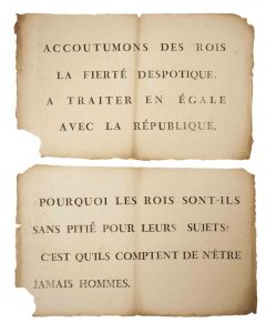 N° 200·(SLOGANS RÉVOLUTIONNAIRE) – 5 CURIEUSES AFFICHETTES ANONYMES (26 x 41), contenant une formule …