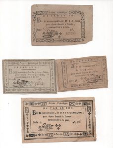 Papier-monnaie, billet de banque et actions, du XVIIIe au XXe – Franc-maçonnerie, du XVIIIe au XXe – Cartes géographiques et plans de ville, du XVIIe au XXe – Caricatures et presse, 2 de moitié du XIXe – Vieux papiers (militaria, théâtre, diplômes …) – Loir et Cher et Touraine – Vieux papiers et documents historiques – Herbier et varia