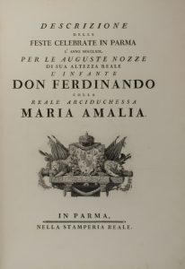 N° 75·Descrizione delle feste celebrate in Parma l'anno 1769 per le Auguste Nozze di Sua Altezza Reale …