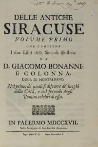 N° 99·Buonanni Giacomo-Mirabella Vincenzo, Delle antiche Siracuse volume primo (-secondo). In Palermo: …
