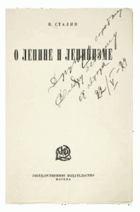 N° 311·STALINE. LÉNINE ET LE LÉNINISME. Moscou, Ogiz, 1924. In-8 broché, couverture illustrée.