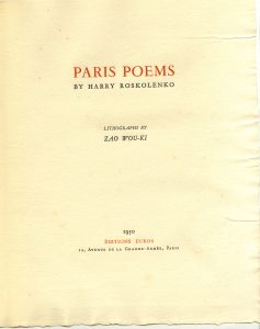 N° 13·[ZAO WOU KI ]. HARRY ROSKOLENKO. Paris Poems.