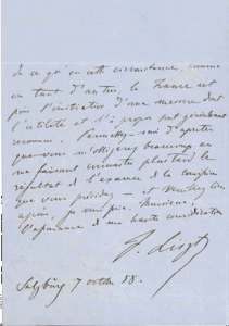 N° 54·Franz LISZT (1811-1886) L.A.S., Salzburg 7 octobre 1858, [à Camille Doucet] ; 2 pages in-8.