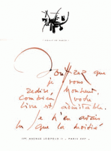 EXPERT : Monsieur Thierry BODIN. 45, rue l’Abbé Grégoire -75006 Paris. Tél. 33 (0) 1 45 48 25 31 – E-Mail : lesautographes@wanadoo.fr