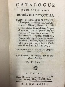 N° 149·[GEMMOLOGIE]. REMY (Pierre). Catalogue d'une collection de très belles coquilles, madrépores, …