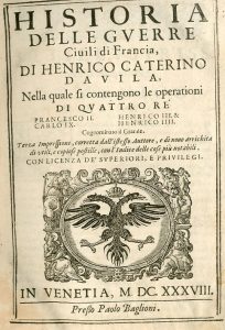N° 21·DAVILA (Henrico Caterino). Historia delle guerre civili di Francia. [...]. Venetia, Paolo Baglioni, …