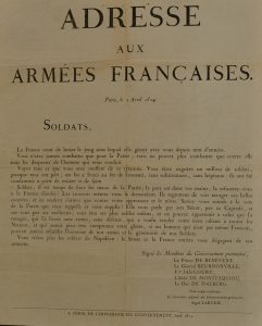 N° 93·ENSEMBLE DE 1 PLACARD.- Abdication de Napoléon. 2 avril 1814.