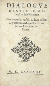 N° 23·[CROMÉ (François Morin, sieur de)]. Dialogue d'entre le Maheustre & le Manant: Contenant les …