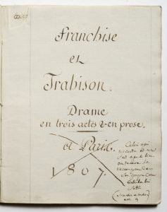 N° 73·RANCHISE ET TRAHISON : Pièce de théâtre en trois actes et en prose. Daté de 1807 et donc …