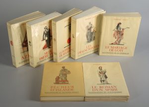 BEL ENSEMBLE DE LIVRES ILLUSTRÉS & ANCIENS – Provenance Château de Sablé-sur-Sarthe. À PROPOS DU CHÂTEAU DE SABLÉ-SUR-SARTHE : Bel exemple de l’architecture classique française de la fin du règne de Louis XIV, le château fut construit par l’architecte Desgots sur un promontoire rocheux en bordure de la Sarthe entre 1715 et 1730 pour Jean-Baptiste Colbert de Torcy, marquis de Sablé (1665-1746) et neveu de J-B Colbert. Protégé au titre des monuments historiques, le château accueille depuis le début des années 1980 un centre technique décentralisé de la Bibliothèque nationale de France destiné à la conservation et à la restauration des documents imprimés.