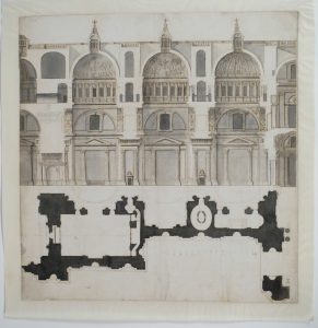 N° 288·ÉCOLE ITALIENNE. Coupe transversale d'une façade intérieure d'église, avec 3 niches. Plan au …