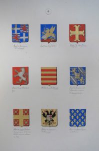 Livres de sciences : réunion exceptionnelle de 3 ouvrages illustrés par Pieter Apian, hydrographie & hydraulique (Bélidor), astronomie, mathématiques, horlogerie, médecine, microscopie (Ledermüller), botanique (Dodoens), histoire naturelle (Buffon), ingénierie (poliorcétique : Scala, Vauban, Nicolas de Fer)… Dessins (Van Dyck, Quast, Berchem, Tiepolo, Ensor, Cuyp, Madou, Spilliaert, Livemont, Ewing, Ben Salem, Spilliaert, Sadji…), gravures (De Bruycker, Danse macabre d’Holbein dans une reliure à plaque de l’époque (Annonciation), peintures à l’huile (portraits et scènes religieuses)… Arts décoratifs & Architecture : dessins & aquarelles (projet d’un magasin à Londres, piscine, maisons), livres illustrés par Mucha & Verneuil, ouvrages sur la perspective, les œuvres à Versailles par Gavard, ouvrages sur les Arts Nouveau (Mucha) & Déco. Voyages : Panama, Kentucky (missionnariat), Chine, Égypte (Denon), Pacifique… Atlas & cartes (Ferraris), Histoire (Recueil de chartes par Hay), Économie (Rey de Planazu), Bibliophilie, Littérature moderne, Religion, nombreux ouvrages en italien (Il Pomodoro, Sardi, Il Paradosso)… Éditions du 16e s. : réunion de 7 post-incunables dans une rel. à plaque flamande (portrait de Charles Quint), nombreuses éditions aldines (auteurs anciens), Amadis de Gaules (6 livres), Bible de l’Ours, métrologie (Agricola), Reliures remarquables (à la cire, à dentelle, décorées, à plaques, armoriées, brodées…), Manuscrits & Archivalia : livre d’heures flamand (1572), constitution d’une confrérie espagnole, vie de Pie IX (enluminé), Importante section relative à la Belgique : livres (nombreux ouvrages sur Liège), rares dessins topographiques, cartes, manuscrits & archives (Album amicorum de musiciens belges exilés à Londres en 1915, correspondance de Léopold Ier avec un de ses ministres…), photographies (Armée du Salut)