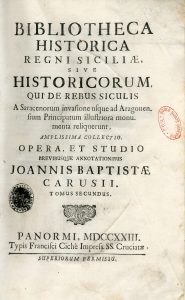 N° 104·CARUSO (Joannes Baptista). Bibliotheca historica regni Siciliae, sive historicorum, qui de rebus …