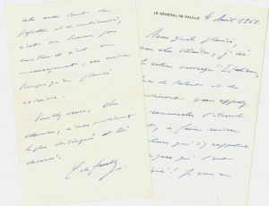 N° 227·Charles de GAULLE. 3 L.A.S. et 1 L.S., 1959-1961, à Gabriel Faure ; 5 pages et demie in-8 et 1 …