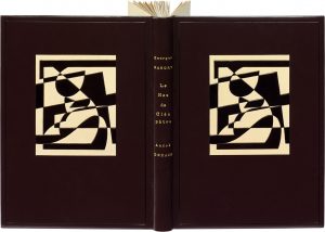 Collection Gérard Vidalenche. Livres d’artistes. Un nouveau territoire conquis par les bibliophiles. Dans la collection Vidalenche presque tous se distinguent par un caractère d’unicité qui en fait des objets très désirables : présence de dédicaces, de manuscrits, de dessins, d’aquarelles… En outre près de 100 reliures inconnues jusqu’à ce jour et sorties des ateliers des meilleurs maîtres du moment portent des décors appelés, inévitablement, à porter témoignage du goût de notre époque. On remarquera en particulier quatorze reliures signées de Renaud Vernier, artiste détenteur du titre très convoité et rarement décerné par l’État de « maître d’art ». La plupart des trente autres relieurs présents dans cette galerie se hissent à un niveau d’invention et de perfection technique proche de celui de Vernier. En résumé, nul ne saurait contester que chacun des livres ici présentés soit par essence une pièce de collection. En se séparant de celle-ci, Gérard Vidalenche a transformé le personnel ex-meis de l’amateur en un fraternel ad omnes adressé à la communauté des bibliophiles et des amateurs d’art. « Christian Galantaris »