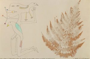 N° 54·BRAUNER Victor. RENCONTRES OISEAUX ET PLANTES DE VARENGEVILLE. DESSIN AQUARELLÉ ET COLLAGE SIGNÉ. …