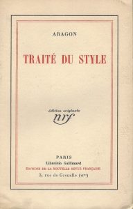 N° 375·ARAGON (Louis). Traité du style. Paris, Gallimard, 28 avril 1928. In-12, broché, couverture …