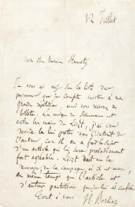 N° 20·Hector BERLIOZ (1803-1869). L.A.S., 12 juillet [1837], au pianiste Camille Stamaty ; 1 page in-8, …
