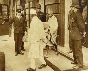 N° 354·*Mohandas Karamchand GANDHI (1869-1948). Photographie avec signature autographe « MK …