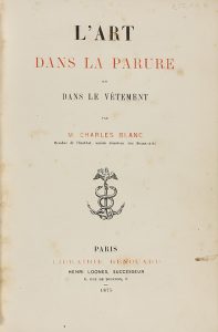N° 2006·(MODA-TEJIDOS) - 1875 - BLANC, CHARLES : L´ART DANS LA PARURE ET DANS LE VETEMENT. Paris : …