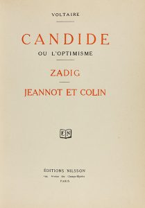 N° 2071·(BIBLIOFILIA) - 1910 ca - VOLTAIRE : CANDIDE OU L´OPTIMISME - ZADIG - JEANNOT ET COLIN. Paris : …