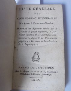 N° 126·[LYON] [ ] - LISTE GÉNÉRALE DES CONTRE-RÉVOLUTIONNAIRES MIS À MORT à Commune-affranchie, …