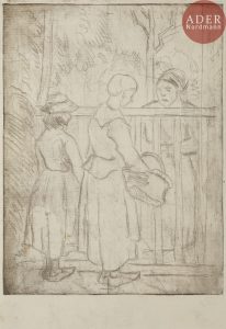 N° 372·Camille PISSARO - Mendiantes. Vers 1894. Eau-forte. 198 x 149. Delteil 110. Très belle et unique …