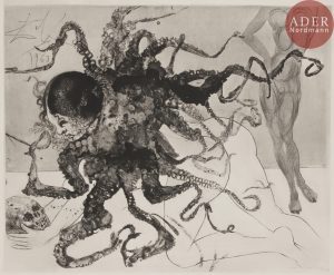 N° 578·Salvador DALÍ - Méduse. (Mythologie, pl. 16). 1963-1965. Héliogravure et pointe sèche. …