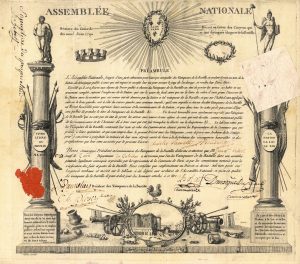 N° 6·BASTILLE. BREVET DE VAINQUEUR DE LA BASTILLE, 19 juin 1790 ; vélin oblong in-fol. en partie impr. …