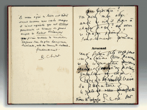 SURRÉALISME. AVANT-GARDES DU XXe SIÈCLE : Ensembles importants CONSTANTIN BRANCUSI et TRISTAN TZARA. Éditions originales – Autographes – Photographies – LIVRES ILLUSTRÉS – REVUES – DESSINS. APOLLINAIRE (Guillaume) Lettre autographe signée Gui à Lou (Louise de Coligny-Châtillon), datée 1er fév.1915, 2 pages grand in-4 sur papier à en-tête du café Tortoni, à Nîmes (Très belle lettre d’amour à Lou). BRANCUSI Constantin – AUTOPORTRAIT dans son ATELIER. PHOTOGRAPHIE ORIGINALE. Paris, circa 1922. BRETON (André) – CHAR (René) – ELUARD (Paul) RALENTIR TRAVAUX. Paris, Éditions Surréalistes, 1930. Paul ELUARD Les Animaux et leurs hommes. Manuscrit autographe, avec dix dessins originaux (Manuscrit autographe complet de ce recueil publié en 1920, le premier d’Eluard écrit en vers libres, où se manifeste l’influence Dada.). CHAR (René) – ARSENAL. Avec un frontispice par Francesc Domingo. Sans lieu, [Nîmes], Méridiens, 1929 (Édition originale d‘une grande rareté, dédiée à André Cayatte)  BRANCUSI Constantin – 15 LETTRES AUTOGRAPHES SIGNÉES à Florence MEYER. Paris, 1933-1947. 15 Lettres autographes (Importante correspondance adressée à Florence Meyer, danseuse américaine) … etc..