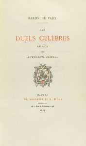 N° 52·1884. - LIBRO : (BIBLIOFILIA). - BARON DE VAUX: LES DUELS CÉLÈBRES. París : Ed. Rouveyre & …
