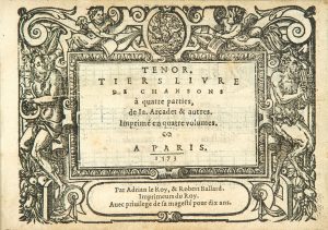 N° 15·CHANSONS. - Tenor. Tiers [- Quatrieme.; - Second.; - Unzieme] livre de chansons à quatre parties, …
