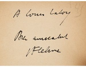Experts : Frédéric Harnisch (Livres et manuscrits). In-4°. 85 rue de la Fontaine au Roi. 75011 Paris. T.+33 6 (0) 1 97 02 32 – E-Mail : contact@in4o.fr Et Jérôme Cortade (Autographes). « Le Prosopographe ». 21 Quai Georges Clémenceau. 78380 Bougival. T.+33 6 83 59 66 21 – E-Mail : Jerome_cortade@orange.fr