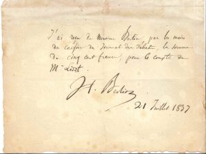 N° 10·Hector BERLIOZ (1803-1869). P.A.S., 21 juillet 1837 ; 1 page oblong petit in-4 ....