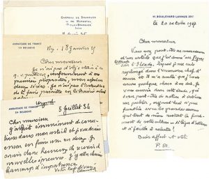 N° 60·Paul CLAUDEL (1868-1955). 16 L.A.S., 1934-1951, à Marcel Thiébaut, à la Revue de Paris