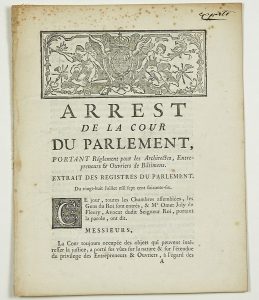 N° 208·(PARIS. ARCHITECTES.) - « Arrest de la Cour du Parlement de PARIS, portant Règlement pour les …