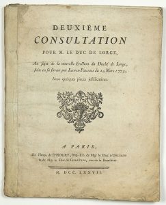 N° 236·BRETAGNE. DURFORT Duc de LORGES. «Deuxième consultation pour M. le Duc de LORGES, au sujet de la …