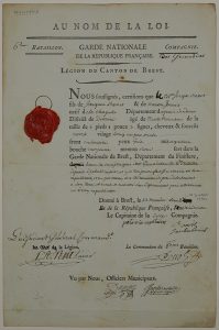 N° 367·(FINISTÈRE) « GARDE NATIONALE, LÉGION du CANTON de BREST. » Pièce signée des Officiers de la …