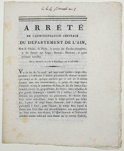 N° 378·AIN . CHASSE AUX LOUPS. 1797. “Arrêté de l’administration Centrale du Département de …