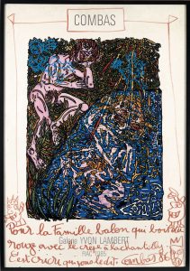 N° 77·COMBAS Robert. AFFICHE DÉDICACÉE ET SIGNÉE AVEC DESSINS ORIGINAUX. Paris, Galerie Yvon Lambert, …