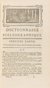 N° 47·1790. LIBRO. (BIBLIOFILIA). DICTIONNAIRE BIBLIOGRAPHIQUE, HISTORIQUE ET CRITIQUE DES LIVRES RARES.. …