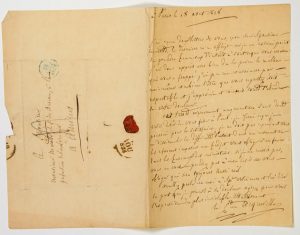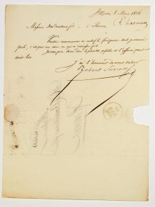 Histoire et Régions de France. Manuscrits et Documents historiques. Affiches et placards. Archives. Lettres autographes. RARE LETTRE de Robert SURCOUF, Célèbre Marin et CORSAIRE Français (Saint-Malo 1773 – 1827) adressée à Messieurs DESBOUILLONS… Signée « Robert SURCOUF » à ST MALO le 8 Mars 1826. CHÂTEAU DE CHANTILLY (OISE) . 1702 – Pièce signée “HENRY JULES DE BOURBON” Prince de CONDÉ. MOULINS (03) 9 Juin 1700. Procès pour usurpation de Noblesse. COMPAGNIE DES INDES. 1737. Louis Auguste d’Albert d’Ailly, Duc de CHAULNES, Maréchal de France en 1741. Extrait des Registres du Conseil Supérieur de la MARTINIQUE 1764. (MORBIHAN. 1774. ABBAYE DE SAINT GILDAS DE RHUYS.) etc…