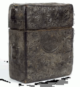 N° 15·ÉTUI DE LIVRES D'HEURES RENAISSANCE EN CUIR REPOUSSÉ ET CISELÉ.  Format 17 x 14 x 7 cm.