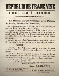 N° 76·GUERRE DE 1870/71. DES CLOCHES POUR LES CANONS. Arrêté de Léon GAMBETTA, Membre du gouvernement …