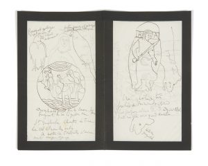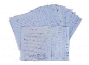 Les collections ARISTOPHIL • 5 • ÉCRIVAINS & POÈTES DU XIXe-XXe. Dans cette vente exceptionnelle de part la remarquable qualité des documents autographes, figurent les personnages parmi les plus influents ou originaux de la Littérature et de la Poésie de la fin du XIXe siècle jusqu’aux années 60. Avec à la plus haute place, hors de toute chronologie Arthur Rimbaud, citons André Breton, Albert Camus, Louis-Ferdinand Céline, René Char, Guy Debord, Paul Eluard, Ernest Hemingway, Jack Kerouac, Henri Michaux, Francis Picabia, Marcel Proust, Raymond Queneau, Paul Verlaine, Boris Vian. La part belle est donnée au romanesque avec les correspondances amoureuses de Guillaume Apollinaire à Lou, de Nadja à André Breton, de Paul Eluard à Gala. (Claude Oterelo)