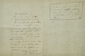N° 11·CAMILLE CLAUDEL. L.A.S. [au critique d’art Armand Dayot]. 1 p. ½ in-12 sur papier texturé vert …