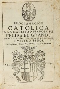 N° 49·1640. LIBRO: (BARCELONA-GUERRA SEGADORS). PROCLAMACION CATOLICA A LA MAGESTAD …