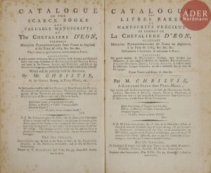 N° 143·[ÉON (Charles de Beaumont d’)]. Catalogue des livres rares et manuscrits précieux du cabinet de …